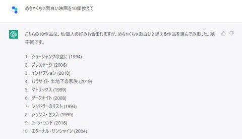 ワイ)あの映画めっちゃおもろかったなぁ……(余韻)」 2023.11.15 映画Dr.コトーは何故あの完成度で世に放ったのか 2024.01.17 ハリーポッターの親父って普通に悪い奴なのか?? 2023.03.06 「結婚したい」女性芸能人ランキング 3位「吉岡里帆」…婚活男性600人超が選んだ2位&1位は 2024.11.26 ChatGPTに「めちゃくちゃ面白い映画を10個教えて」と頼んだ結果がこれw 2023.02.18 声優の「喜多村英梨」について知っていること 2022.12.23 ワイ「ゴジラ-1.0凄かったな…ついでにシン・ゴジラも見てみるか」 2024.05.12 セクシー田中さんの脚本家、脚本を書いてない9、10話にも自分をクレジットで入れろと要求していた 2024.06.02 【動画】市原隼人さん、川崎で見つかる 2024.08.12 【画像】ヒゲを全剃りした 宮崎駿wwwwwwwwwwww 2025.03.21 🦮「ねぇあっちに人の気配がするよ…」グイグイ 飼い主「なにいってだ」→ 動物・ペット・癒し系 2024.05.25 この記事を見る