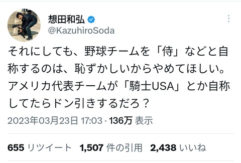 幽遊白書の仙水軍団に1人地味な奴おったよな 2024.05.14 問題「ドラゴンボールの原作で、一度も死んだor殺されたことがない主要キャラを答えよ」 2024.12.18 リベラル映画監督「侍ジャパンって恥ずかしくね?wアメリカが騎士USAって言ってたらドン引きでしょ」 2023.03.25 人気声優・佐倉綾音(31)「ファンに胸挟ませた。血管年齢が57歳だった」 2025.02.16 「かかとの高さが気になる」木村拓哉の“足元”にネット民の視線集中 2024.09.14 ニコラス・ケイジ、あと3、4本で映画から引退を検討 2023.12.07 正直バックトゥザフューチャーを超える映画って無いよな 2024.02.04 【映画】<すずめの戸締まり>興収113億円突破 851万人動員 [ひかり★] 2023.01.05 【映画】『トランスフォーマー/ビースト覚醒』予告編公開 ガチで面白そう 2023.04.29 映画「バック・トゥ・ザ・フューチャー」でよく考えたらおかしな点を考察 2025.02.22 アニメ「アルドノア・ゼロ」総集編に新作「雨の断章」加え、来年2月に劇場公開 アニメ映画まとめ 2024.12.21 この記事を見る