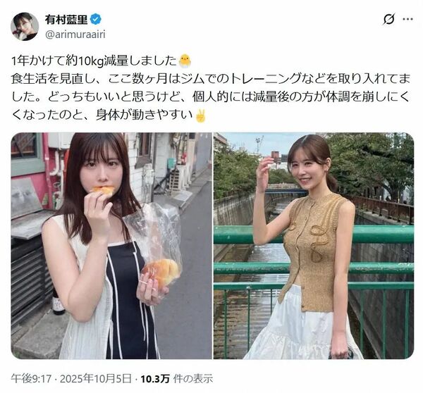 矢田亜希子(45)、ギャル風スタイルにファン驚き「安室ちゃんかと思った」「沢尻エリカさん?」 2024.08.26 【画像】MEGUMI、小池栄子、根本はるみらの爆乳おっぱいがエロすぎる 2024.02.11 高岡早紀「買い物中にガードレールに繋だ自分の犬を触らないでと言ったら、逆ギレされ怖かった。こういうの、どう思う?」 2025.09.25 【画像】AKB48卒業発表の柏木由紀、磨き抜かれたプラチナヒップ大胆披露 2023.10.23 今田美桜、リカちゃん人形のおともだちに 『あこがれ芸能人 みおちゃん』発売 2024.10.14 マギー、モデル・すみれと結婚式参加 ドレスコードは「クローゼットの中で一番派手なお洋服」 2024.05.28 中川翔子、マウントしがちな恵比寿住民に物申す「そもそも地方から来てるじゃん、あなたたち」 2023.12.07 46歳・安西ひろこ、“再出発”を決意「新しい道を歩むことを決めました!!」 2025.11.27 有村藍里「1年かけて約10kg減量しました」圧巻ビフォーアフターに称賛の声集まる 2025.10.06 滝沢カレン、第1子を妊娠 事務所関係者「今後の仕事については体調と相談しながら続ける」 2025.02.07 深田恭子(42)、2年ぶり『FRIDAY』の表紙 谷間あらわな“衝撃”カット披露! 女優 2025.11.01 この記事を見る