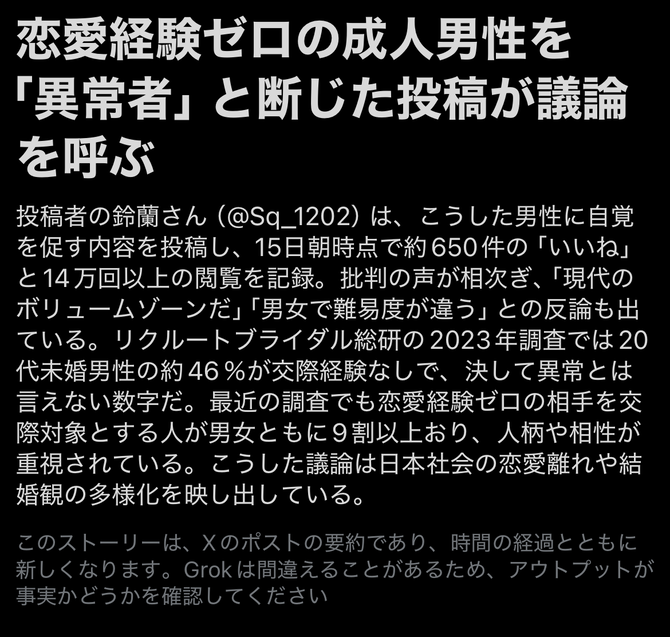 【動画】200万の高級チャリに乗ってた高校生、見知らぬオッサンに説教される 2024.03.15 【画像】大正時代の芸者さんの「嫌いな男」アンケート結果がコチラwwwww 2023.04.10 【画像】「ノーブラで乳首を浮かせながら散歩する」だけのYouTuber、覇権をとるwwwwww 2022.12.24 【速報】ナベツネ、死去 2024.12.19 【画像】港区女子「ベンツのまぜそば美味しすぎ!w」パシャッ 2024.04.20 【悲報】EV車のバッテリー交換費用wwwwwwww 2024.04.16 元職場のパワハラ対策、凄すぎて草ァ! 2025.12.16 【衝撃】M-1新審査員『山田邦子』さんの全盛期、凄すぎる 2022.12.13 【画像】鈴木奈々(36)「あれ?w私お尻大きくない?w」 2024.10.28 18歳童貞が初めて新宿の高級ソープ(120分・65000)に行った結果wwwwwww 2024.04.04 【画像】コロコロコミック、クソガキを新たな性癖に目覚めさせる えちえち・可愛い 2026.03.13 この記事を見る